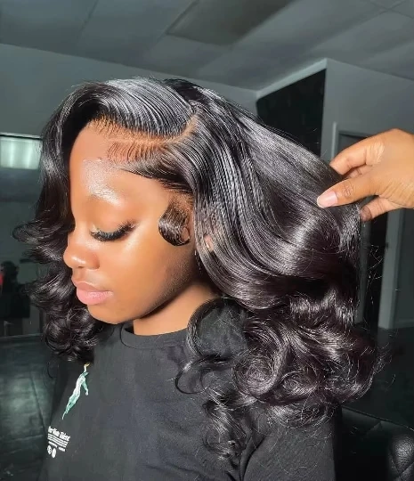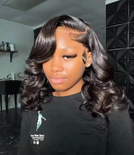 Perruque Bob frontale en dentelle ondulée pré-plumée13x4 Perruque avant en dentelle Short Bob Loose Wave 4x4 Lace Closure Wig 200%